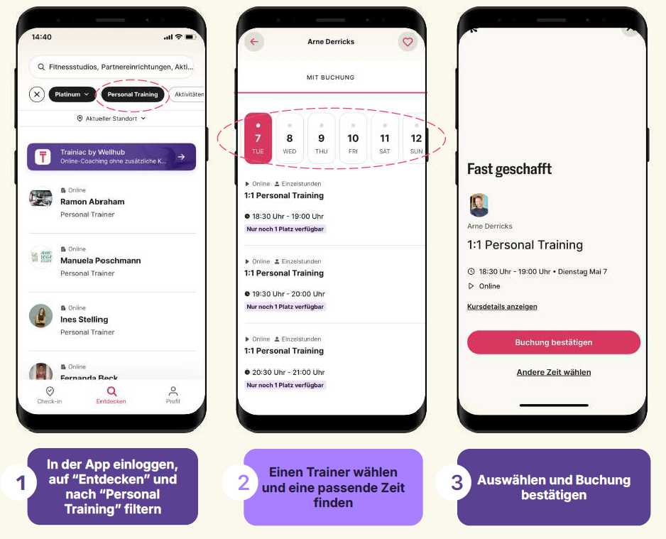 Wenig Zeit für`s Fitnessstudio? Kein Problem, buchen Sie Ihren Kurs für Zuhause: Interaktive Gruppen-Kurse in Echtzeit Teilnahme von überall aus möglich Vielfältige Angebote: von HIIT bis Entspannung Buchung direkt bequem über die Wellhub-App Buchung ...